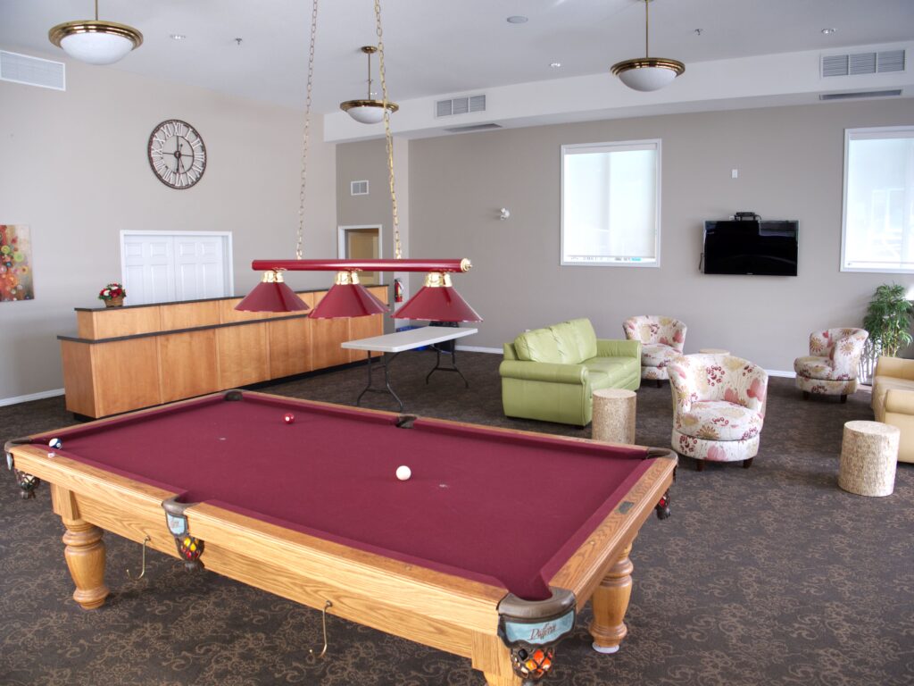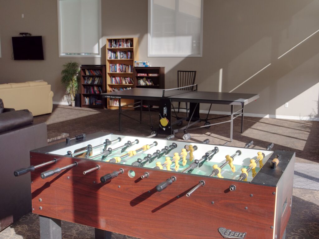 - Amenities Room: Foosball, Pool table, TVs, Sofas, Table Tennis