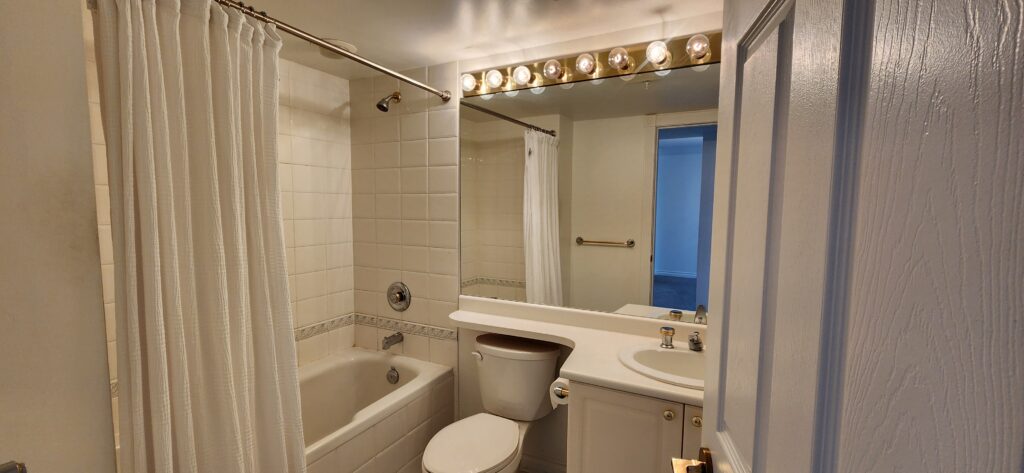 - The main bedroom has two closets with shelving and an ensuite bathroom with a tub/shower combination. Please note this room does not have a main ceiling light and lamps will be needed.