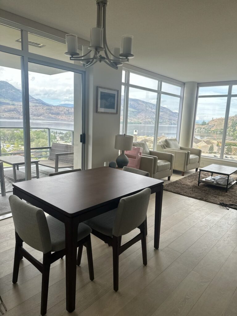 North Facing Skye Tower suite on the 14th Floor with views to the lake and of Knox Mountain. @ bedrooms, but does have a small den on entry for a work space or an overnight visitor on the fold out cabinet murphy bed. **Please note there is a dining table in unit…photos to be updated shortly
