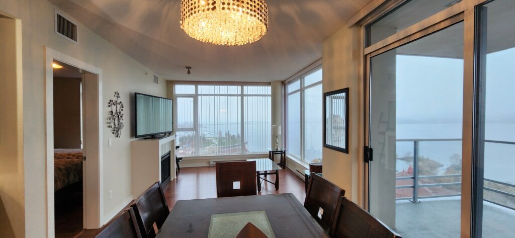 Located on the 19th Floor of the Waterscapes Skye Tower, this condo overlooks Okanagan Lake. It is fully furnished with the exception of a couch and BBQ. Tenants can choose to bring their own couch or one will be provided.